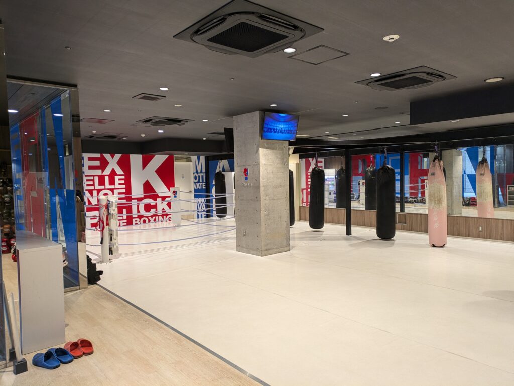 ドアを開けると、いきなりサンドバッグやリングのあるフロアとなっています。