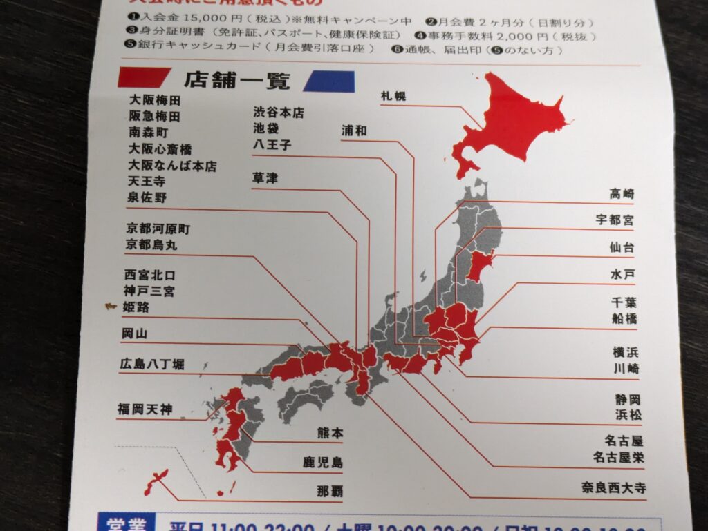 関西・関東地区の店舗が多いですが、九州〜北海道まで主要都市にも進出しています。